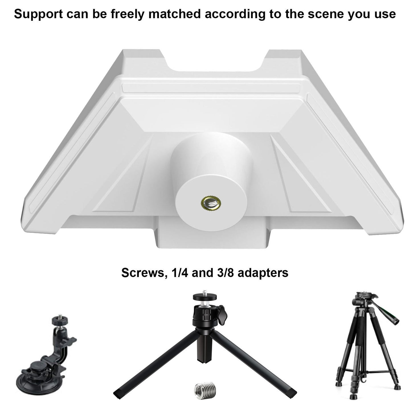 3.The 1/4 thread base adapter compatible with most tripods, pole clamp brackets, suction cup brackets, and roof brackets etc,which adapts to your multiple install choices.