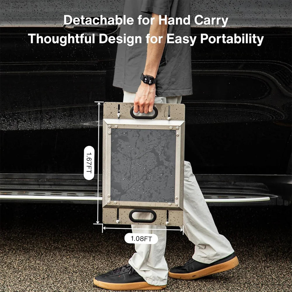 - Modular Design: Easy to assemble. Install the PC shell, secure the stainless steel frame, and add the handle. Use it as a portable stand or mount it on your vehicle's roof.